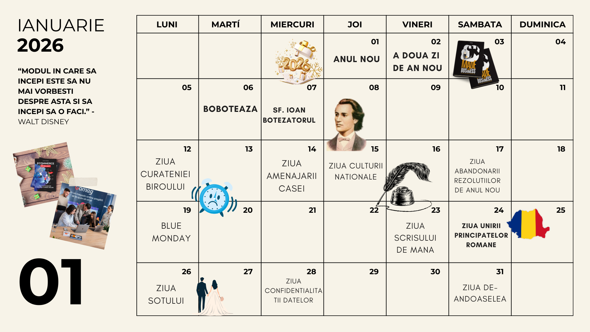 Continuam seria noastra lunara inceputa in decembrie, cu un calendar pentru luna ianuarie si sfaturi care te vor ajuta sa evoluezi.